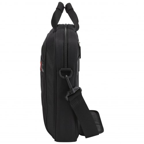 Case Logic DLC-115. Adaptado al estilo casual del profesional moderno, este maletín para notebook acolchado simétricamente tiene capacidad para un notebook, una tableta y todo lo necesario para su trabajo en su exterior negro profundo con acentos de color rojo.